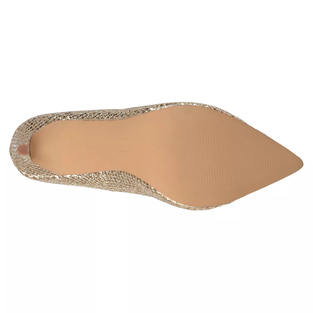 Step into elegant style with these rhinestone accent Albie glitter pumps from Journee Collection.