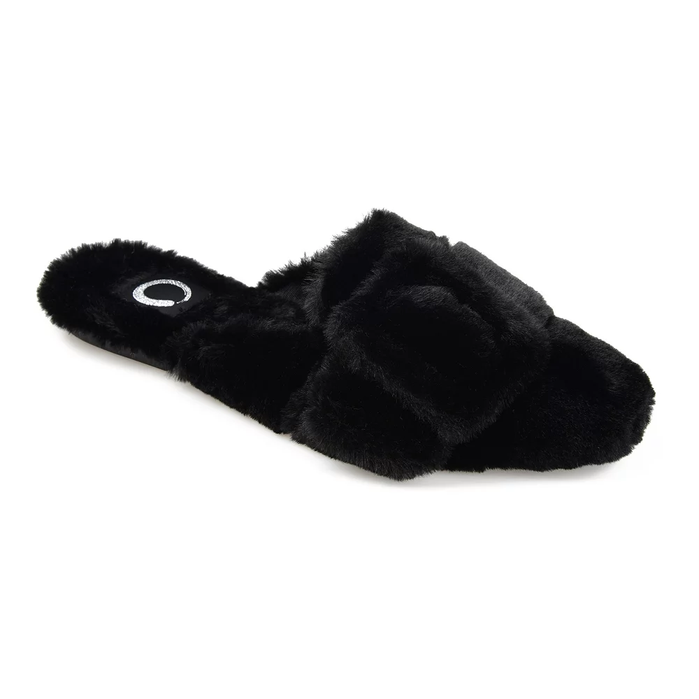 Enjoy plush comfort with these Journee Collection Eara faux-fur slippers.