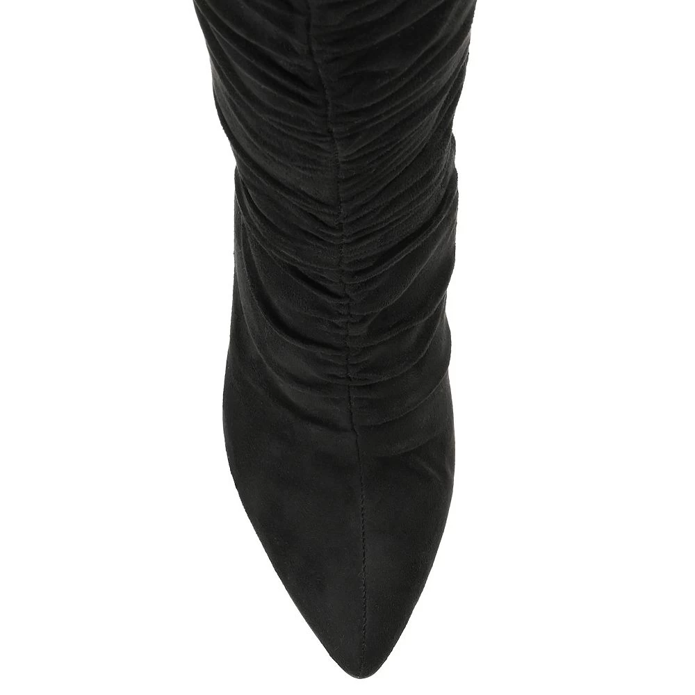 With their chic stiletto heel and stylish ruched design, these Fantasia over-the-knee boots from Journee Collection are a must-have for any wardrobe.