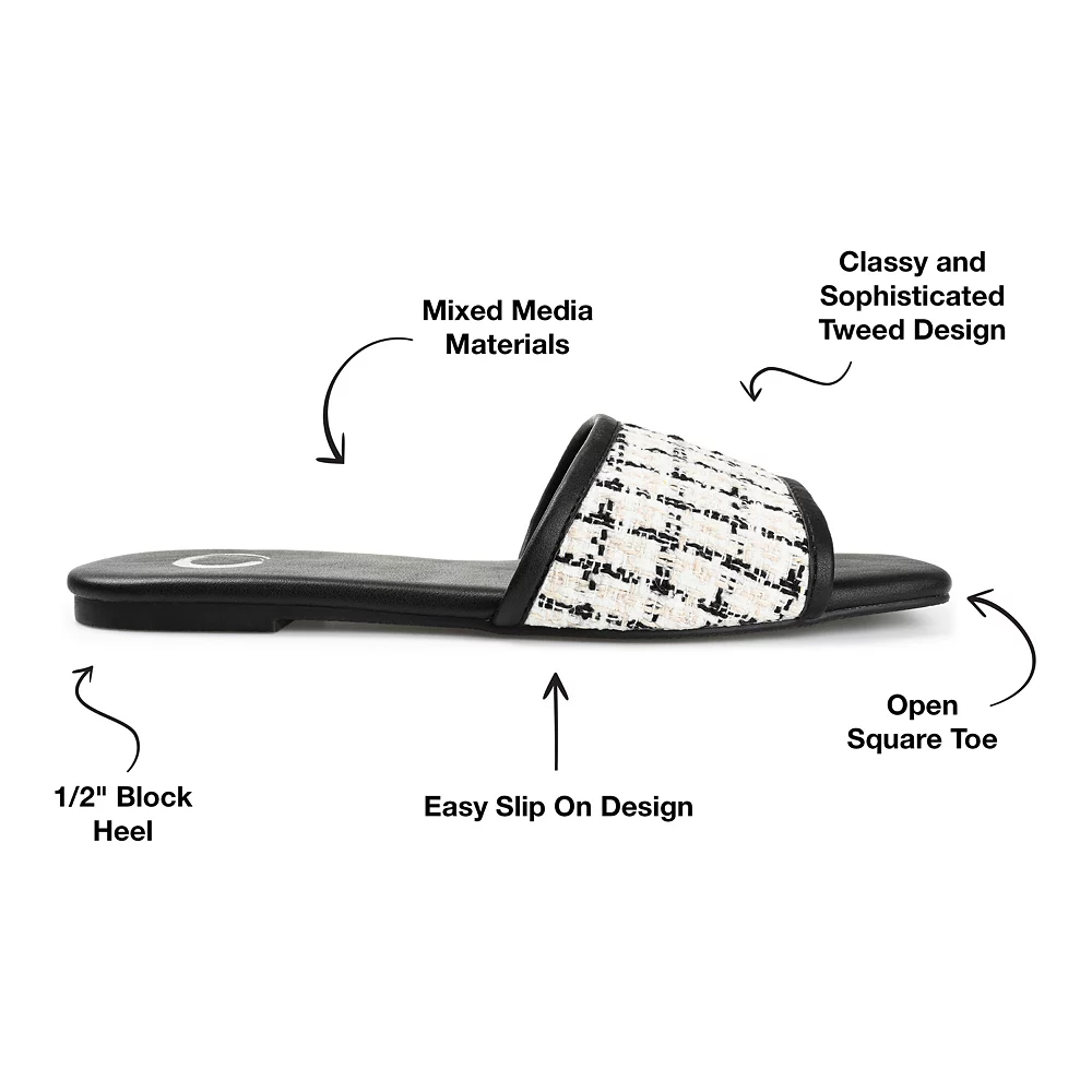 Step up your summer looks in style with these Journee Collection Mikala women’s slide sandals.