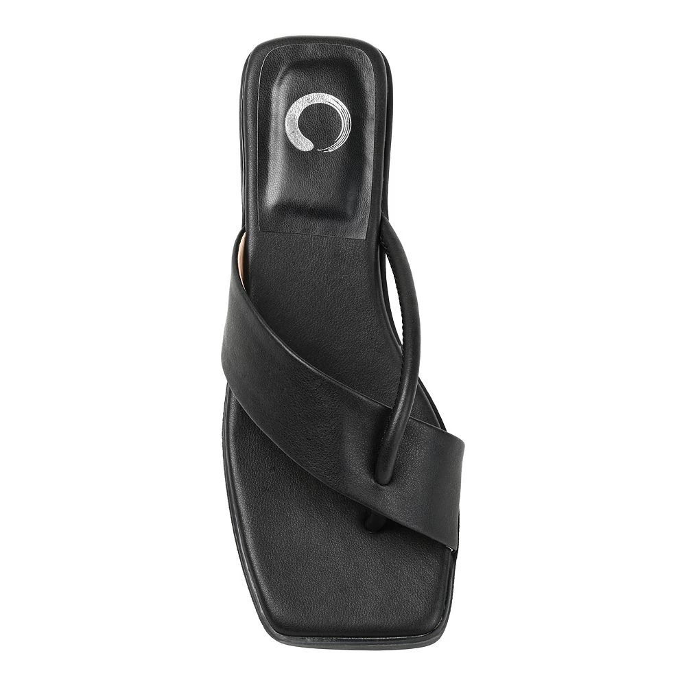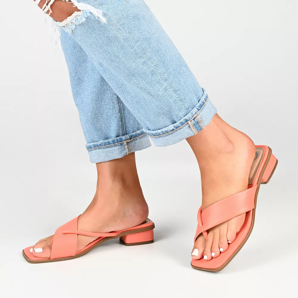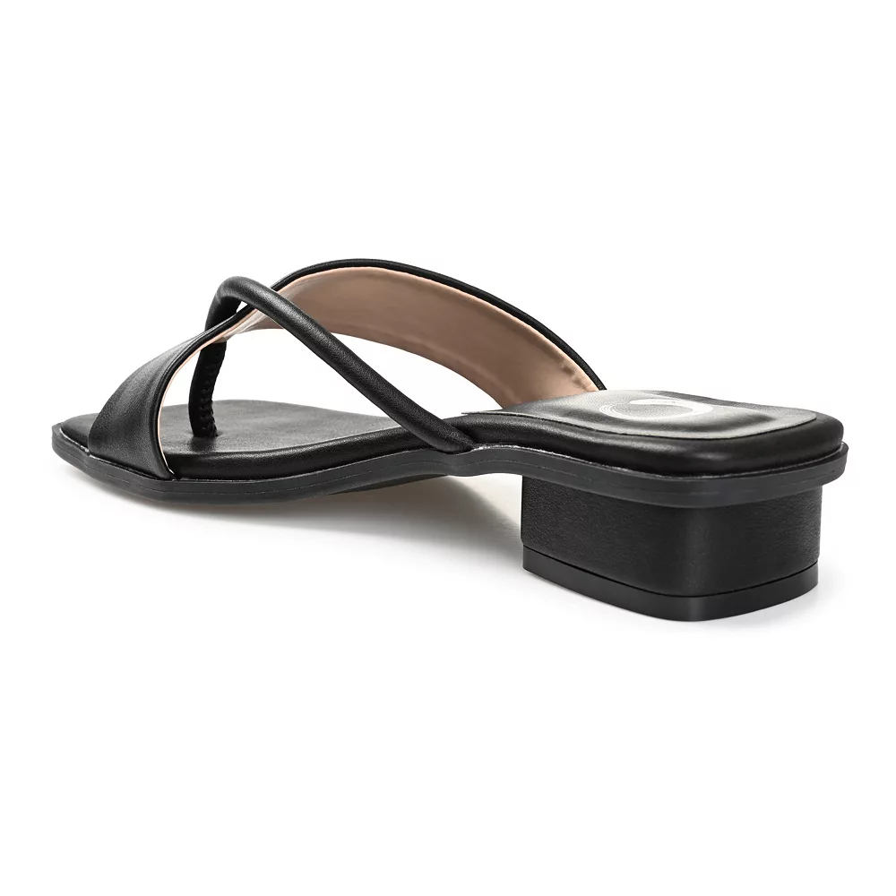 Step into a comfortable yet stylish look that will complement your warm-weather looks with these Journee Collection Mina Tru Comfort Foam women’s heeled thong sandals.