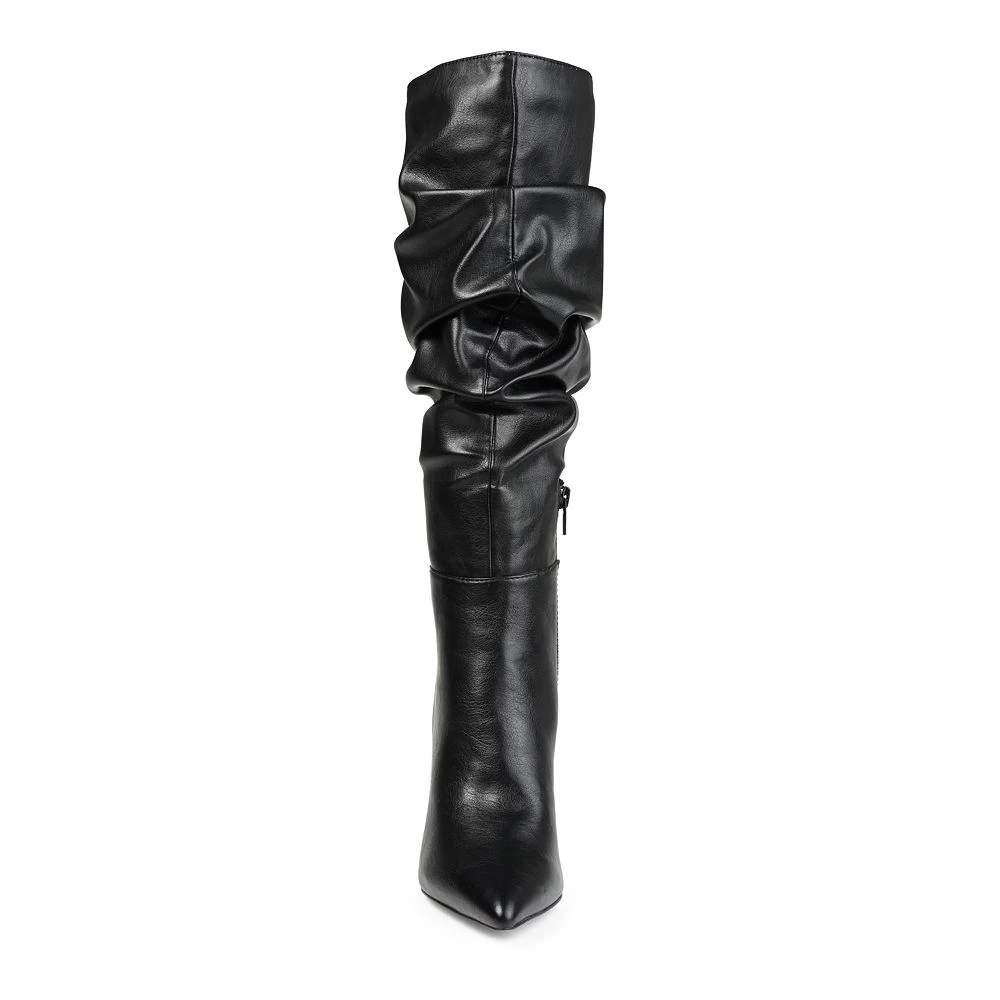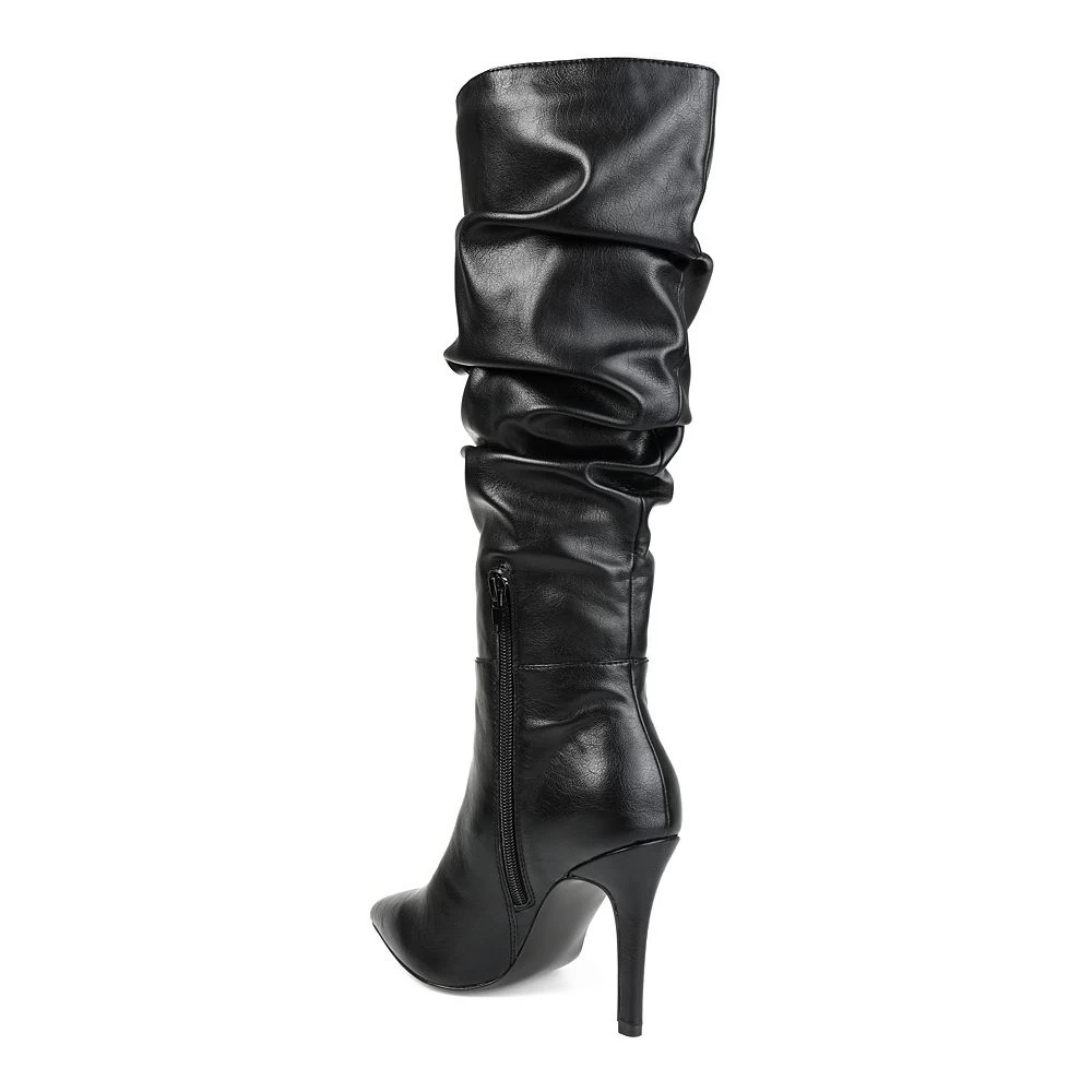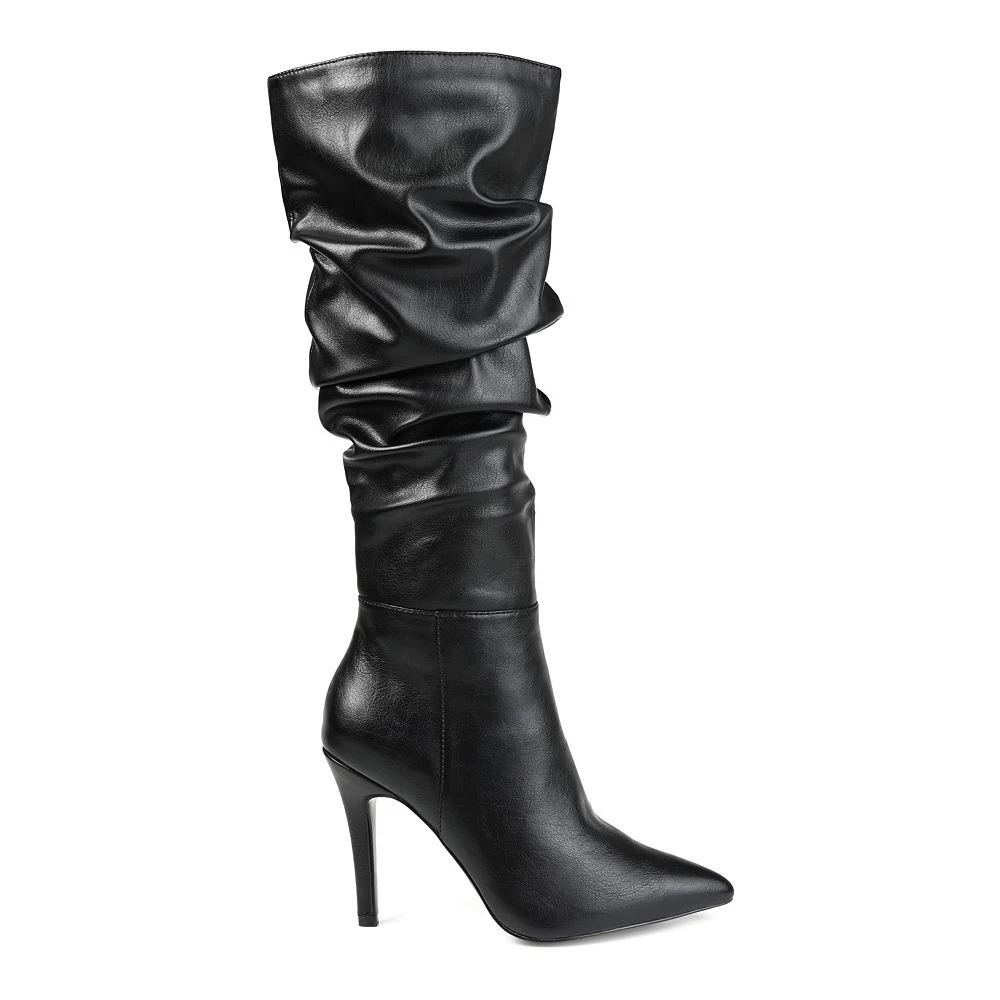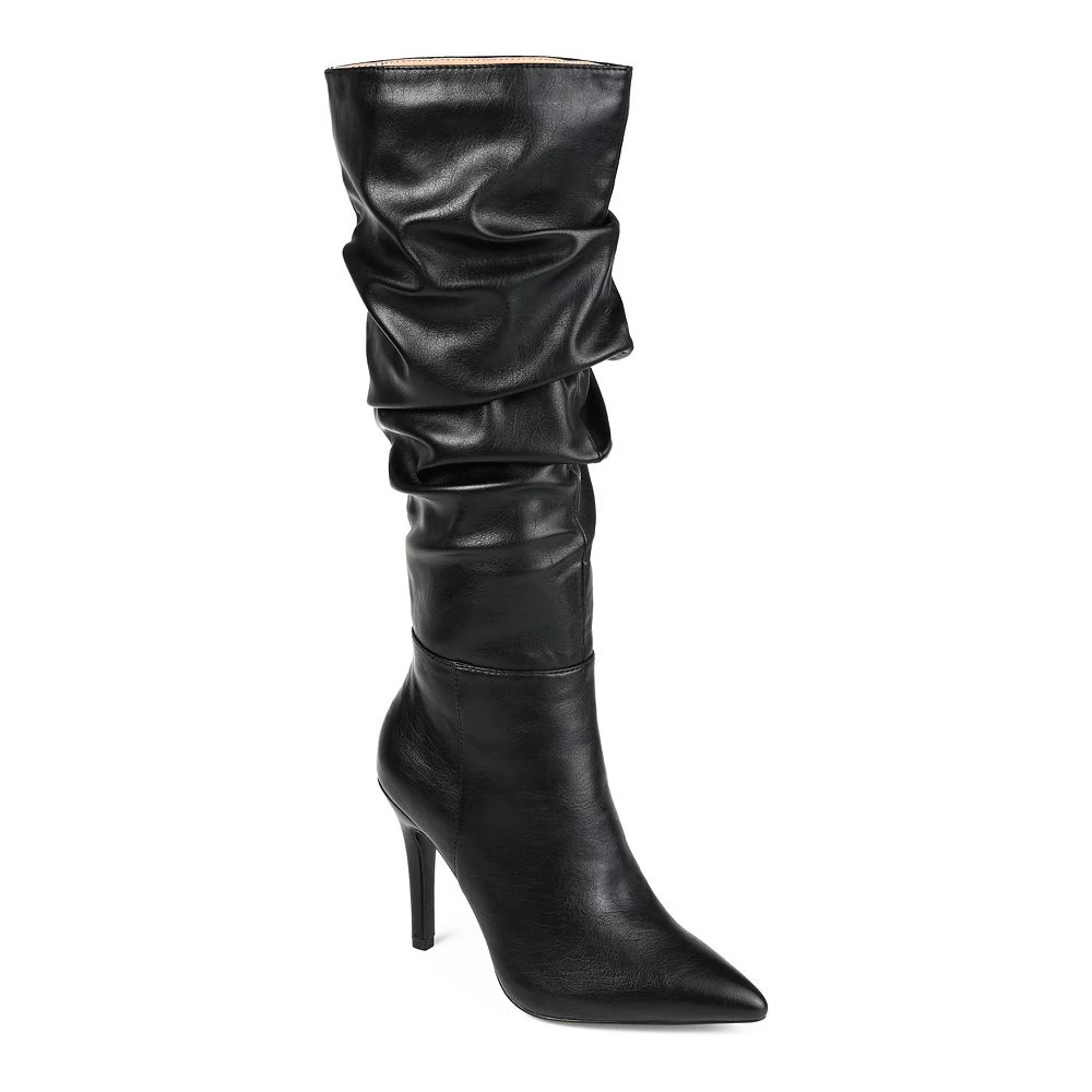A slouchy design and a pointed toe add some extra style to these Journee Collection Sarie Tru Comfort Foam women’s heeled Knee high boots.
